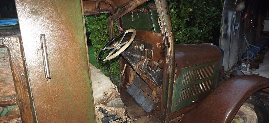 Durant ces 15 dernières années, je l’avais oublié à son sort, préoccupé comme nombre d’entre nous par les aléas de la vie courante. Cet ami, prenant de l’âge et ayant conscience qu’il ne pourrait pas mener à bien la restauration de celui-ci, sachant l’intérêt que je porte au camions et impressionné par le Delahaye sortant de restauration, me l’a gracieusement offert contre bon soin. Depuis, j’ai commencé à déshabiller toute les boiseries complètement HS.