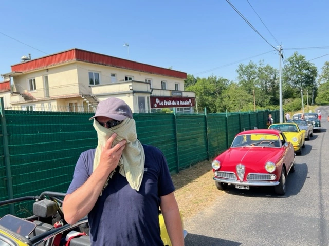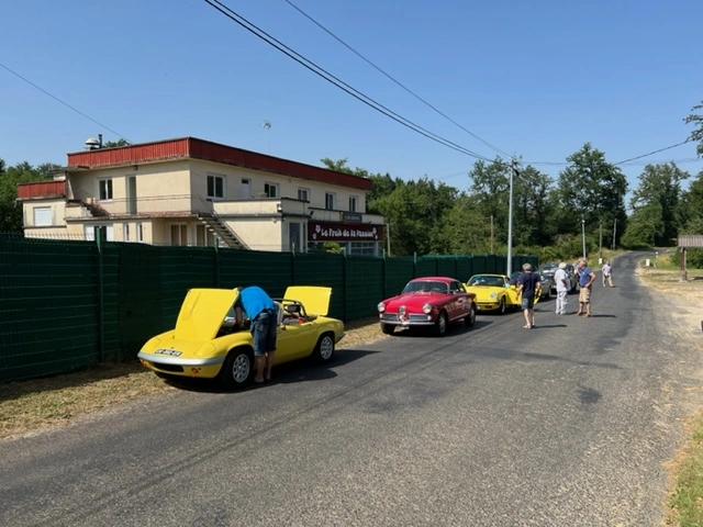 Une petite surprise attendait la troupe. Xavier fait stopper tout le monde à Lubersac, devant un établissement baptisé Le fruit de la passion où il n’y a pas que la canicule qui donne chaud. Arrêt libertin qui a fait péter la bougie d’une Lotus, toutefois vite remise de ses émotions.