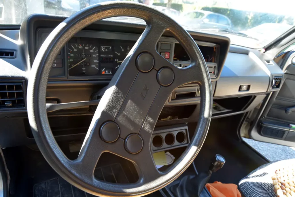 Enchanté, je me rends sur place et découvre que la voiture a été modifiée. Le jeune homme avait radicalement rabaissé la Golf et lui avait implantée des carburateurs de moto, mais l’intérieur était d’origine et en très bon état. Résultat du bricolage: la voiture ne démarre plus. Et étant novice, je décide de demander l’avis d’un ami.